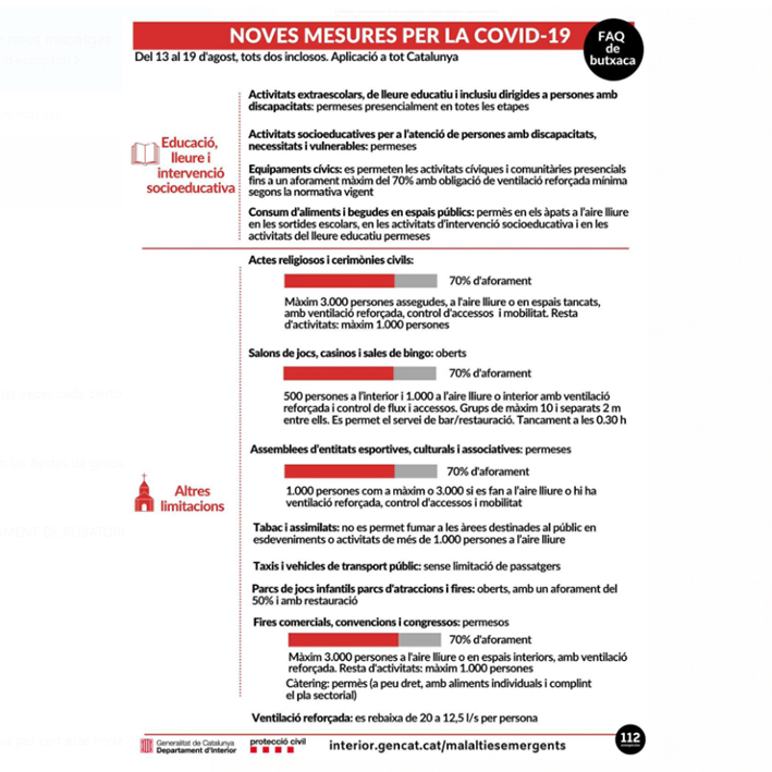 Noves mesures vigents del 13 d'agost al 19 d'agost, els dos inclosos