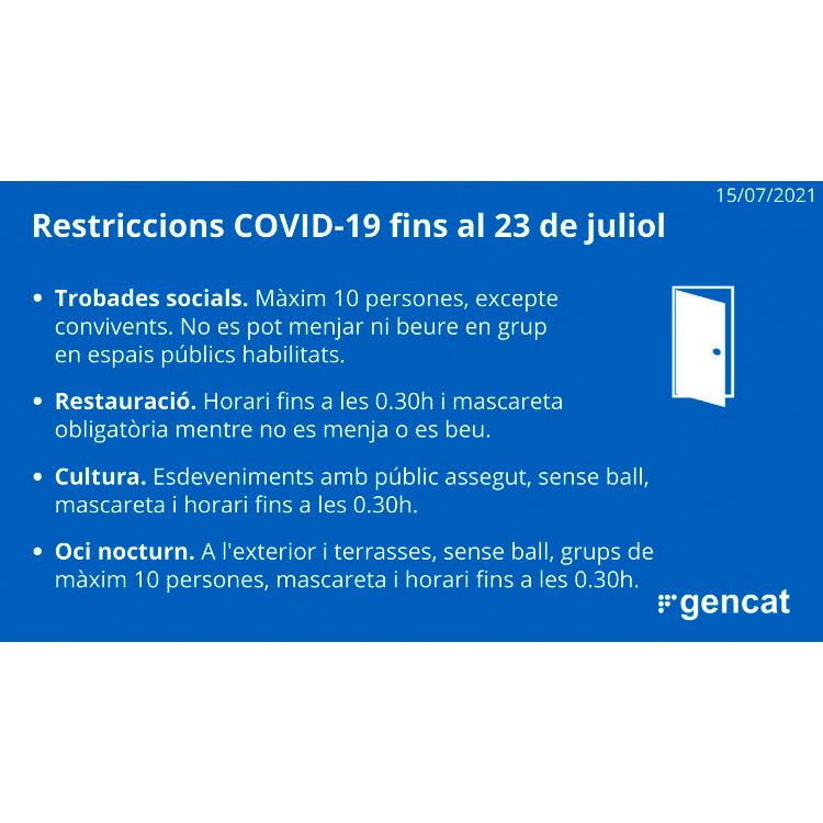 INFORMACIÓ D'INTERÈS | Restriccions COVID-19 fins al 23 de juliol de 2021.