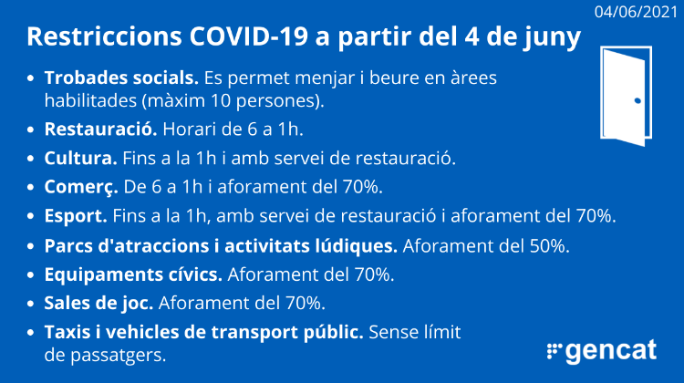 INFORMACIÓ D'INTERÈS | Des d'avui 4 de juny es flexibilitzen algunes mesures per contenir la COVID-19.